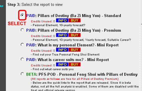 - Select the PAID: Pillars of Destiny (Ba Zi Ming Yun) - Standard